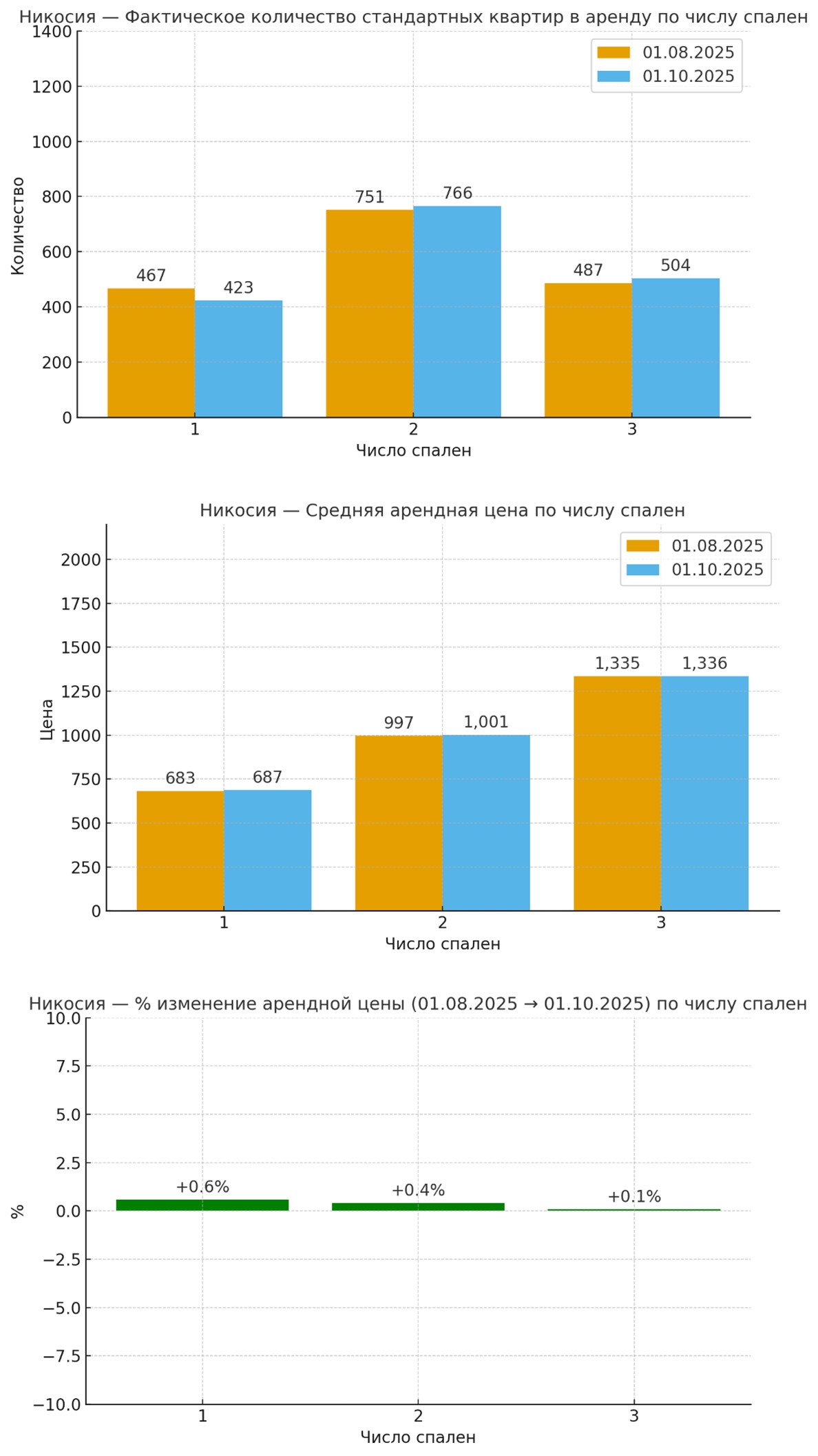 Анализ показал, что в целом цены на аренду стандартных квартир выросли во всех крупных городах Кипра. Исключение составляют лишь трёхспальные квартиры в Лимассоле и Ларнаке, где зафиксировано снижение арендной платы.