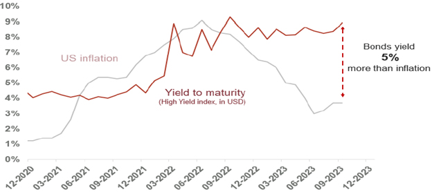 3) Still a decent probability of a US recession in 2024. In this scenario, credit spreads widen by 200-300 bps and corporate bonds will be at extremely attractive levels. Our LEON Income Fund RAIF will be able to lock in a 12% yield in high-yield corporate bonds.
