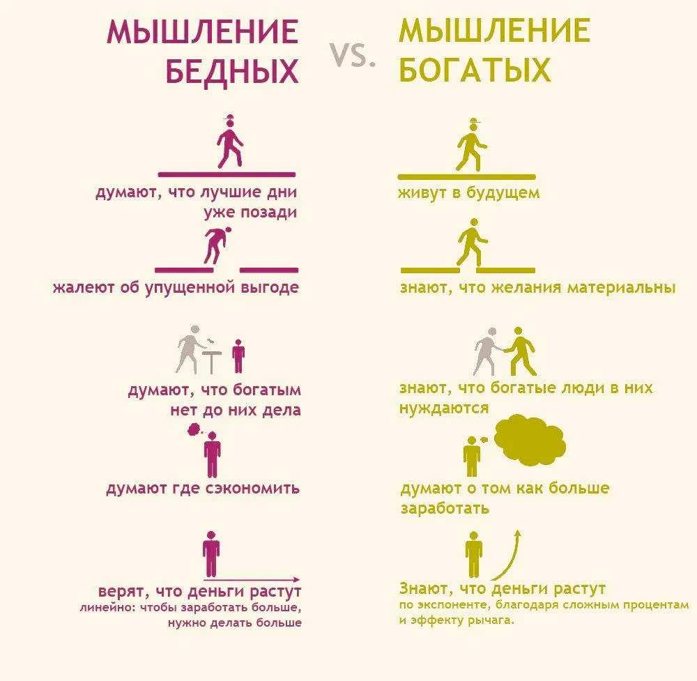 Давайте посмотрим на два противоположных стереотипа мышления: богатых и бедных. Какими установками вы руководствуетесь в своей жизни?