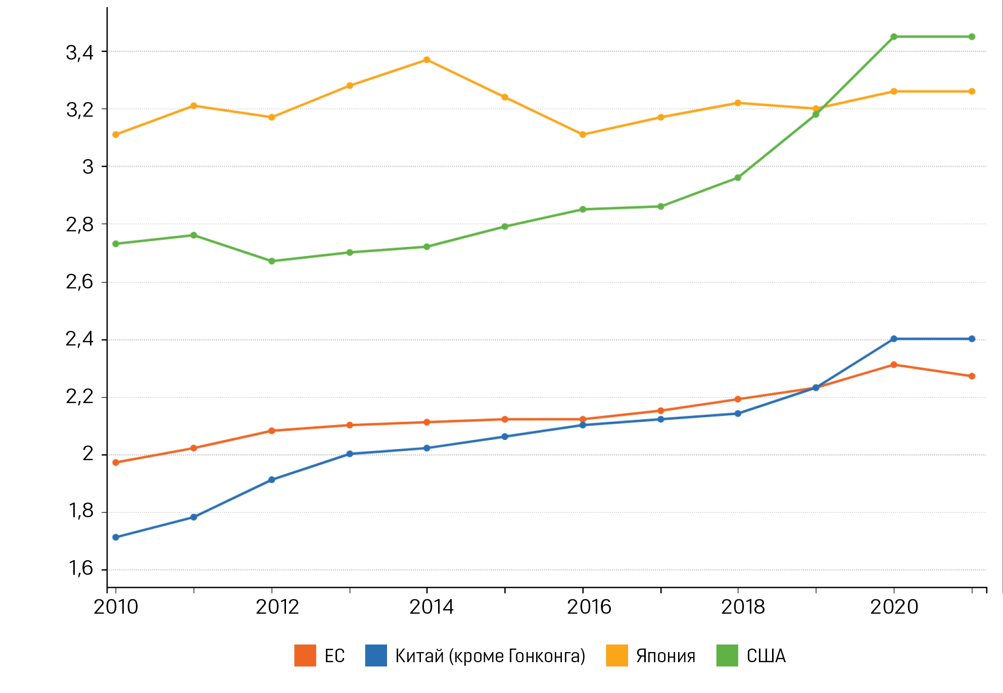 График 1. Валовые внутренние расходы на исследования и разработки, 2010-2021 годы (в % от ВВП)