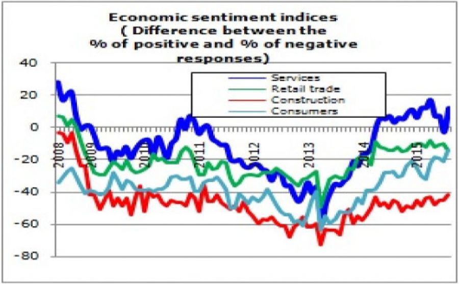 В 2015 году экономические настроения показывают более широкие амплитудные колебания по сравнению с 2014 годом, как сообщает www.stockwatch.com.cy.