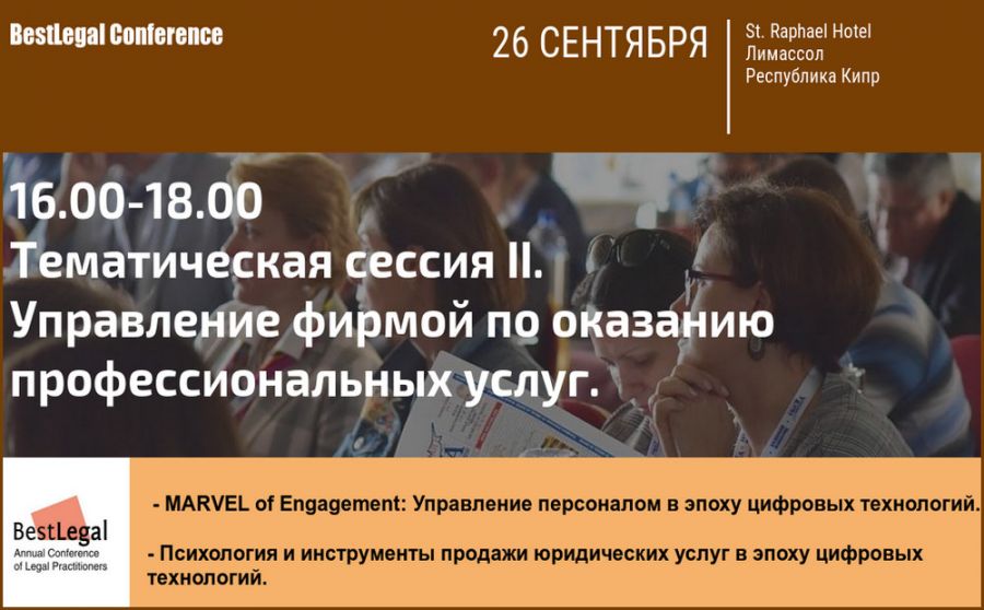 Как превратить пассивных работников в высокомотивированных специалистов? Как юристам искать потенциальных клиентов и превращать их в реальных? Этим актуальным вопросам эпохи цифровых технологий и новых жизненных ценностей посвящен семинар, который состоится 26 сентября в Лимассоле в рамках ежегодной юридической конференции BEST LEGAL.