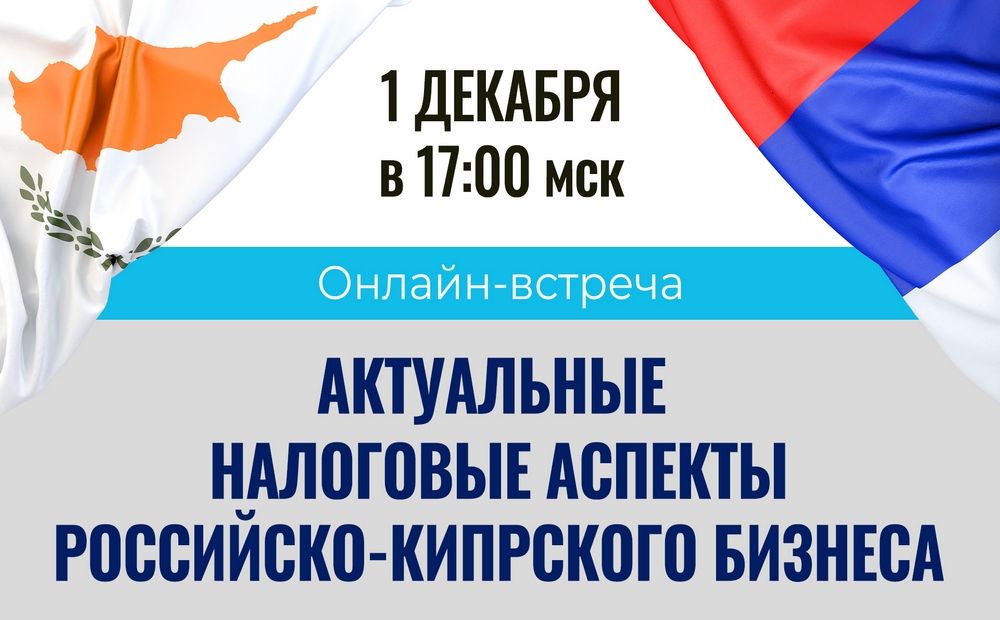 1 декабря в 17.00 (Москва), 16.00 (Кипр) состоится онлайн-встреча в рамках Открытого круглого стола на тему: «Актуальные налоговые аспекты российско-кипрского бизнеса». Участие бесплатное.