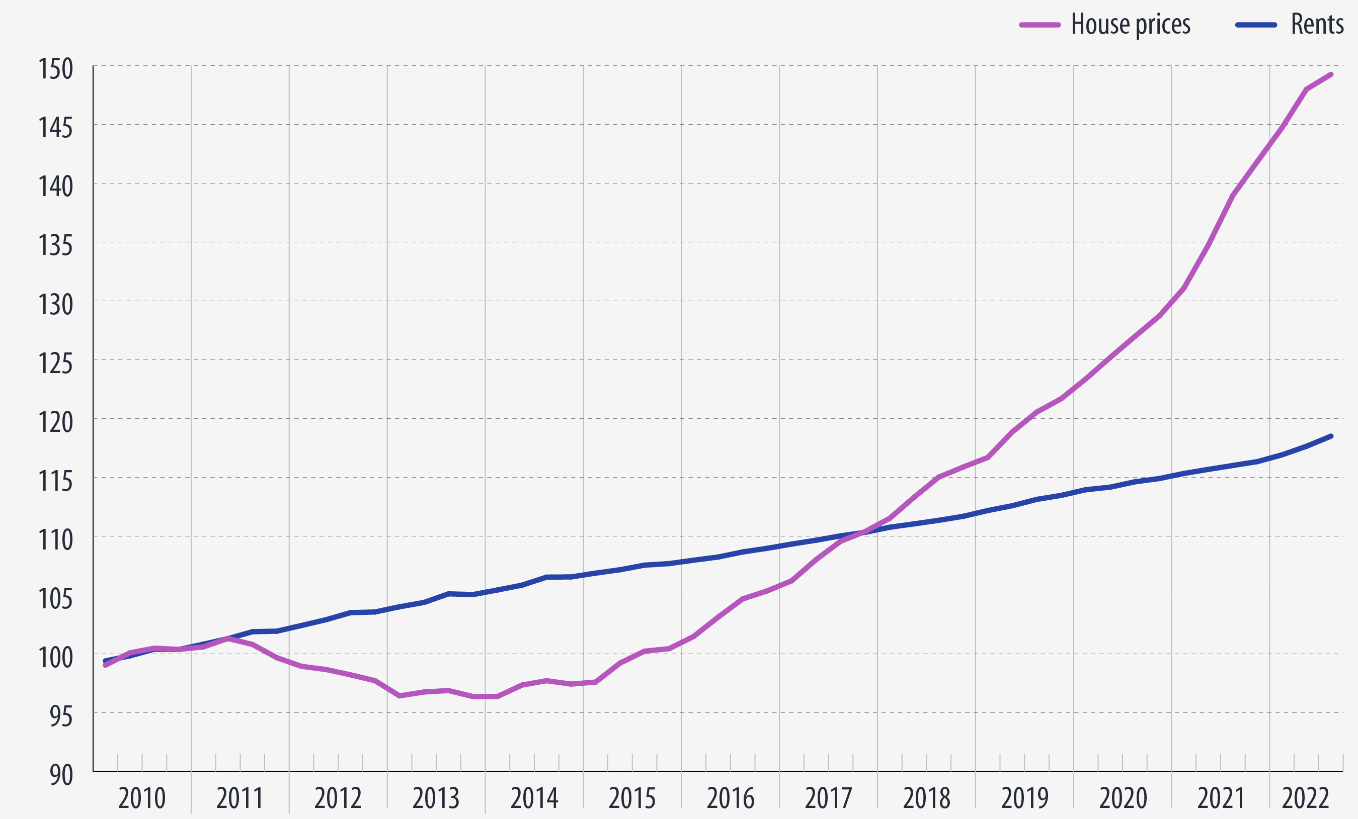 С 2010 года по третий квартал 2022 года арендная плата выросла на 18%, а цены на покупку жилья — на 49%. Цены на покупку жилья более чем удвоились в Эстонии, Венгрии, Люксембурге, Литве, Латвии, Чехии и Австрии.