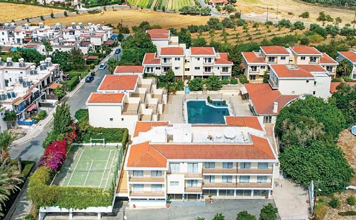 На продажу выставлена доля в размере 84%. Комплекс расположен в 1,5 км от порта Лачи и в 1 км от центра Полиса Хрисохуса. Городской муниципальный пляж находится в нескольких минутах ходьбы. Комплекс состоит из 10 блоков полностью меблированных апартаментов (всего 125 единиц), двух ресторанов, двух магазинов, лобби, бара, теннисного корта, двух игровых площадок для детей – крытой и открытой, двух открытых бассейнов, а также подсобных помещений в подвале. Комплекс был построен в два этапа: в 1990 и 2001 годах.