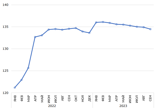 В период с января по сентябрь 2023 года индекс показал рост на 3,88% в сравнении с аналогичным периодом 2022 года.