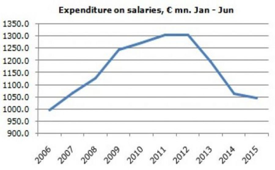 С 2011 года зарплаты госслужащих упали примерно на 20%. В первом полугодии 2015 года расходы на заработную плату снизились до самого низкого уровня с первой половины 2006 года, а именно в общей сумме до 1 044,8 млн евро. В 2012 году расходы на заработную плату госслужащих составляли 1 306,8 млн евро. Ежегодное снижение составило 1,7%.