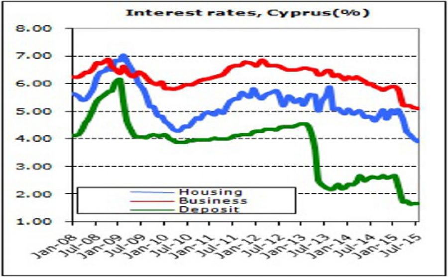 С марта 2015 года кредитные ставки на Кипре снижаются, поддерживая перспективы восстановления экономики. Согласно новым данным, опубликованным сегодня Европейским центральным банком, средняя ставка кредитов для бизнеса на Кипре снизилась до 5,10% в июле 2015 года с 5,15% в июне и 6% в июле 2014 года.