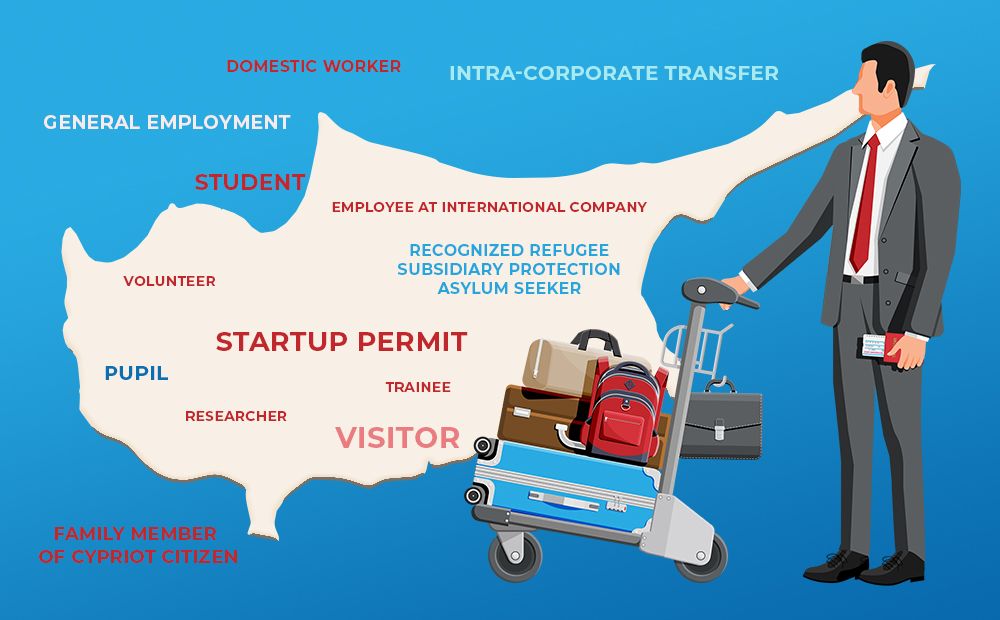 Миграционное законодательство Кипра предусматривает следующие виды разрешений на временное проживание для граждан третьих стран (Temporary Residence Permits for Third Country Nationals - TRP):