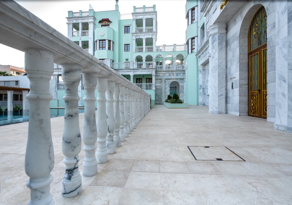 Д.: Впервые на Кипре делается вентилируемый фасад такого высокого здания. На острове еще не было подобного опыта, пришлось и специалистов искать, и технологии. В нашем случае мраморные плиты собираются на алюминиевые направляющие, которые прикреплены к зданию. За счет этого фасад вентилируется.